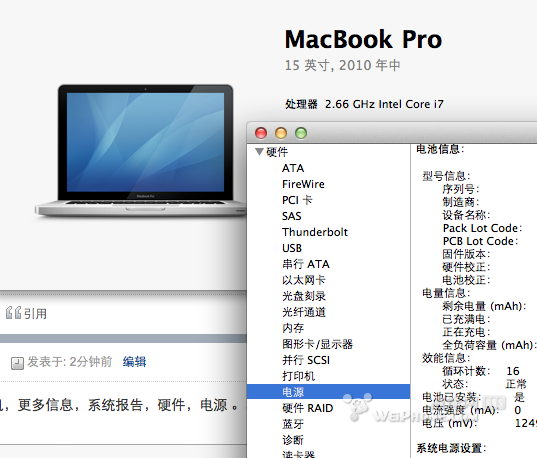 mac里查看电池循环次数步骤StarFox14年前更新关注私信03160 关于本机,更多信息,系统报告,硬件,电源 。。。可以看到 © 版权声明文章版权归作者所有,未经允许请勿转载。THE END生活# mac 喜欢就支持下吧点赞0 分享QQ空间微博QQ好友海报分享复制链接收藏